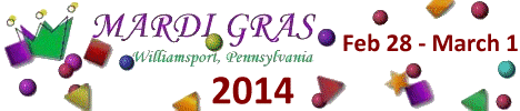 Here in Williamsport, Pennsylvania we are celebrating our 18th annual Mardi Gras... February 28 - March 1, 2014. No, we're not New Orleans... but if you live in Pennsylvania, New York or New Jersey we can give you (and the tens of thousands that have come in the past) a fair taste of the Carnival at a dozen participating establishments - all within walking distance of each other. Visit each club and vote for the king or queen of Mardi Gras. Proceeds benefit local charities!